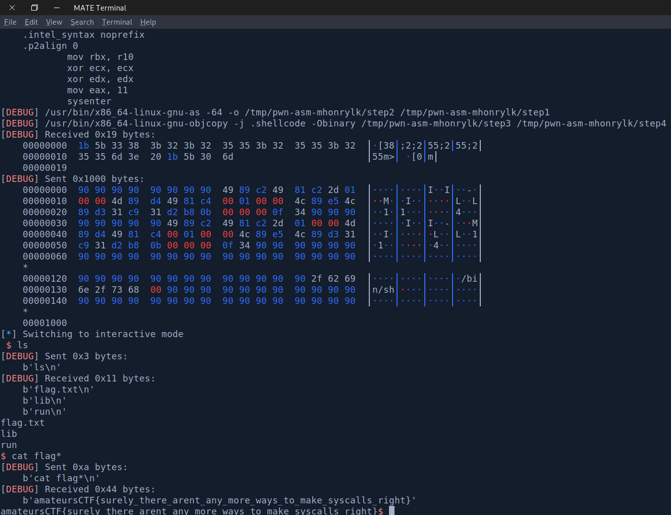 # skill_issue_exploit()Flag: amateursCTF{surely_there_arent_any_more_ways_to_make_syscalls_right}