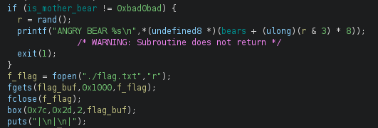 exploitation is quite straight forward and trivial, we wanna use the format string vuln to write into is_mother_bear to pass the check to flag.