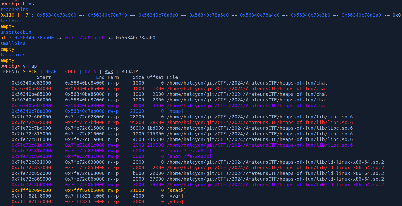 | heaps-of-fun | Binary Exploitation | 352 pts | 56 |