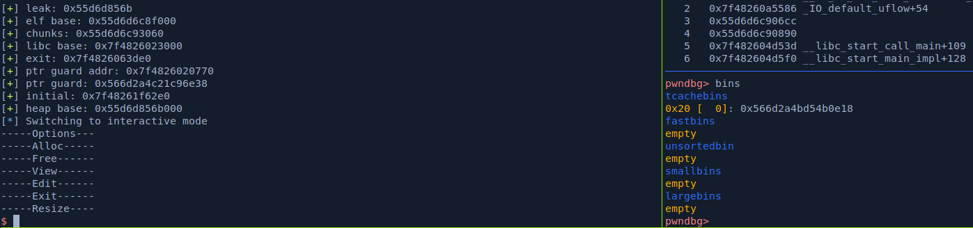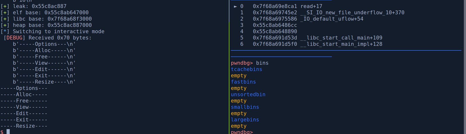 to properly debug in GDB, we gotta do a little bit more work than usual. if I run python exploit.py GDB, it will fail as I CTRL ^ C, it simply just disconnects.