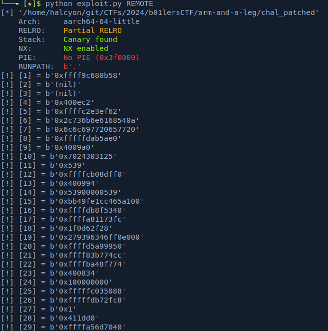 the first thing I did is to fuzz for info leaks, primarily to get the offset to canary as we need it in order to successfully execute our buffer overflow.
