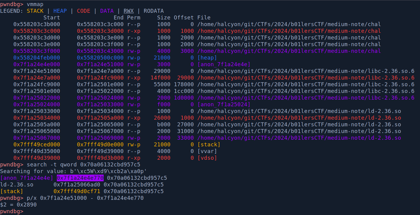 libc.address = leak - 152 - libc.sym['__libc_start_main']