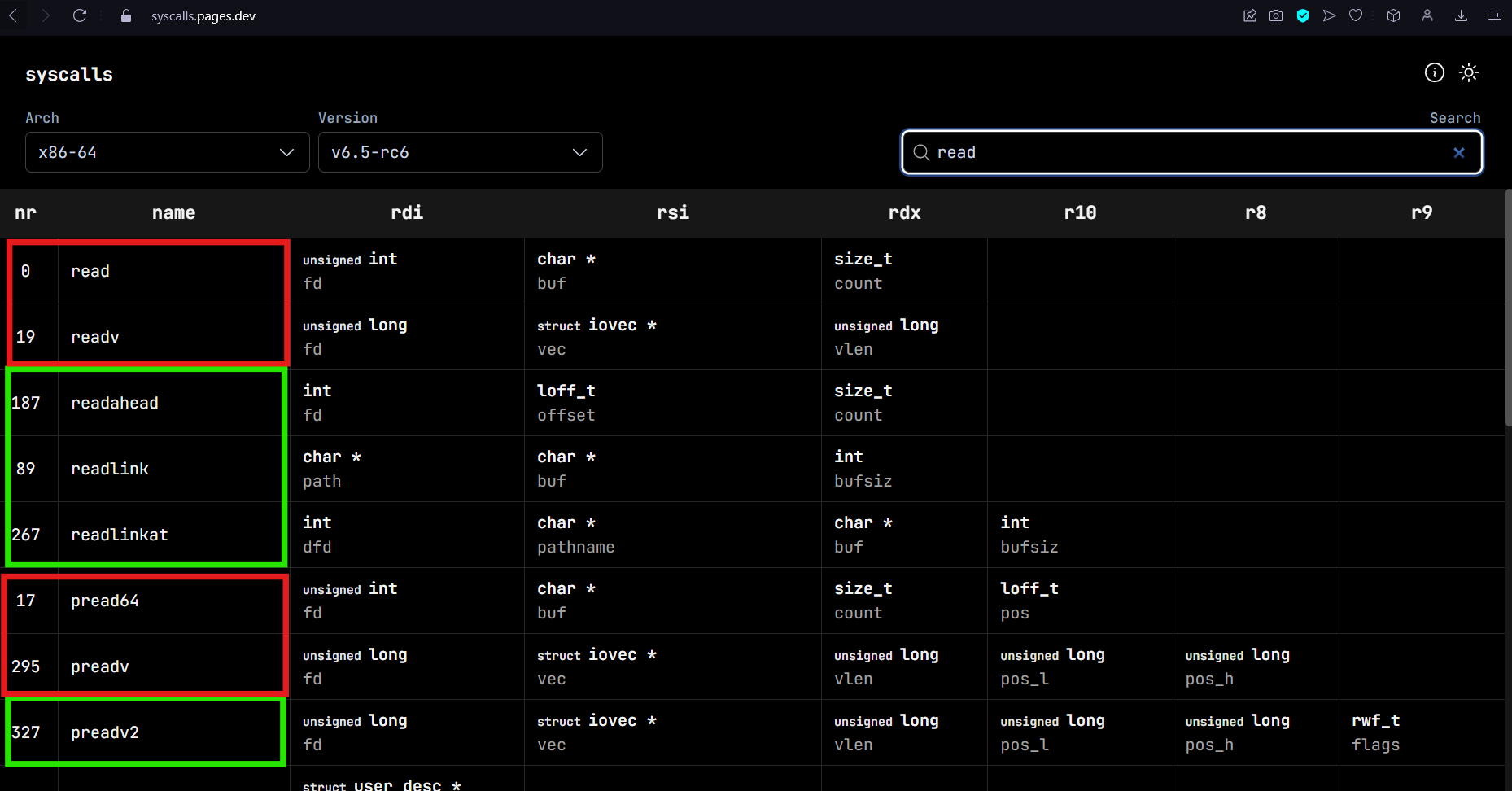 reading at the man pages, readahead, readlink, and readlinkat behaviour is unfamiliar with me at the time. However, preadv2 is an extension to preadv and can behave the same. So I choose it to read buffer.