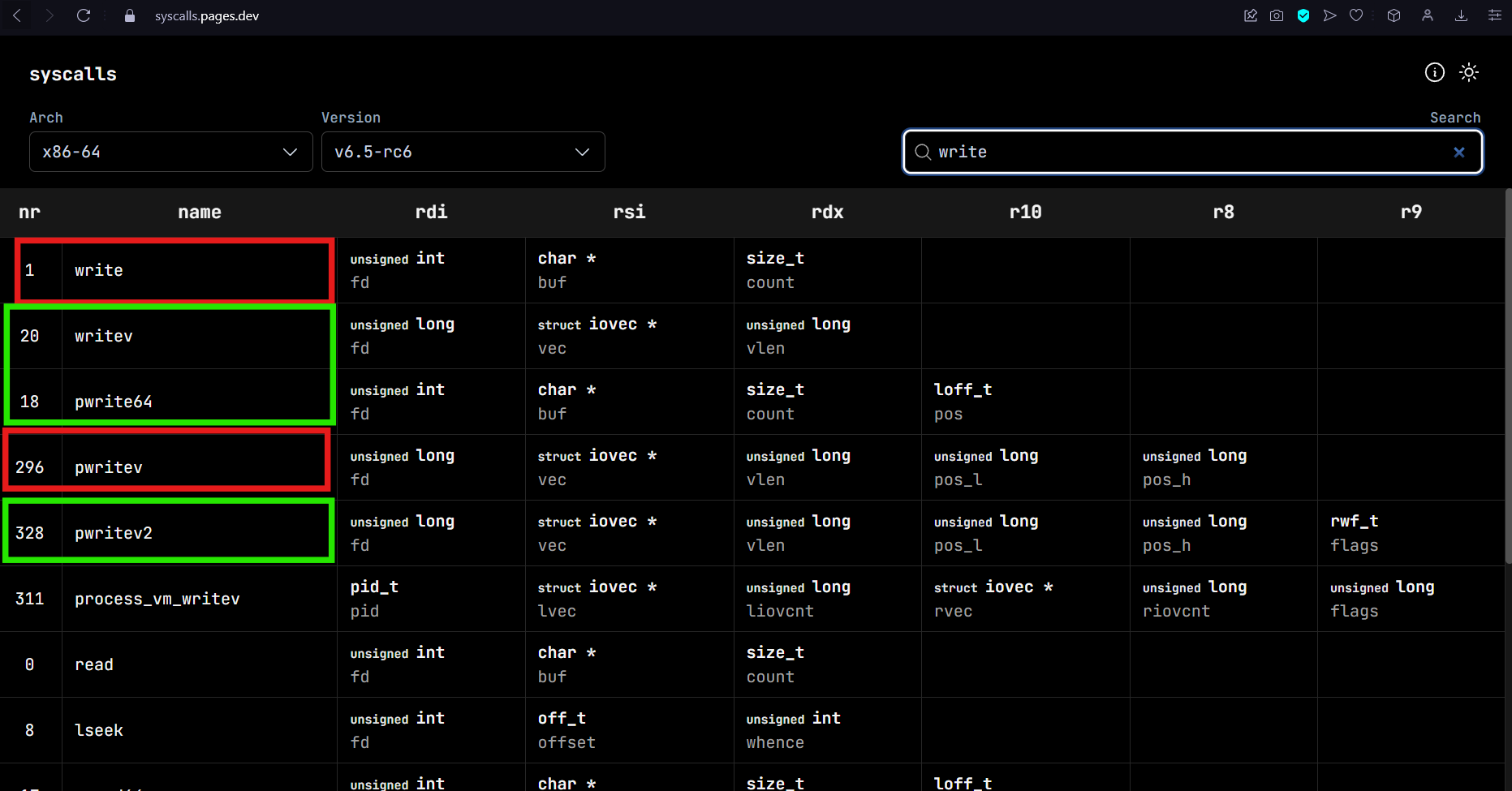 A = fd >> 32 # writev(fd, vec, vlen)