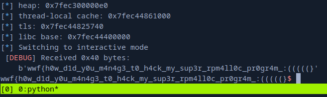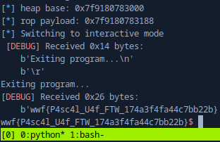 exploit()Flag: wwf{P4sc4l_U4f_FTW_174a3f4fa44c7bb22b}