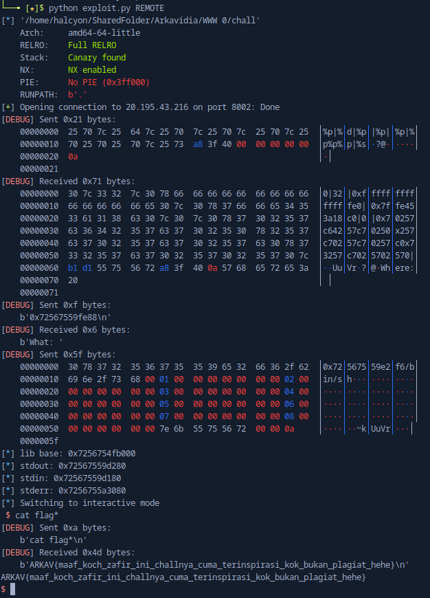 exploit()Flag: ARKAV{maaf_koch_zafir_ini_challnya_cuma_terinspirasi_kok_bukan_plagiat_hehe}