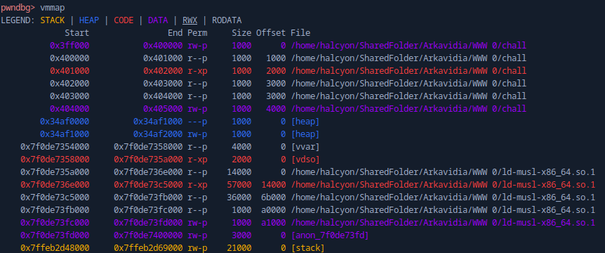CMD ["socat", "TCP-LISTEN:1337,reuseaddr,fork", "EXEC:./chall,stderr"]upon further inspection it was then revealed that alpine uses musl for its libraries instead of the usual glibc which will affect the behaviour of our exploitation later on.